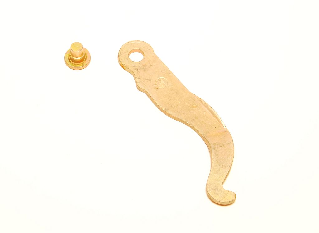 Original Hebel für Handbremsseil und ein Befestigungsniet zum annieten an die Bremsbacke in der linken Bremstrommel hinten am Trabant 500, 600, 601, 1.1.