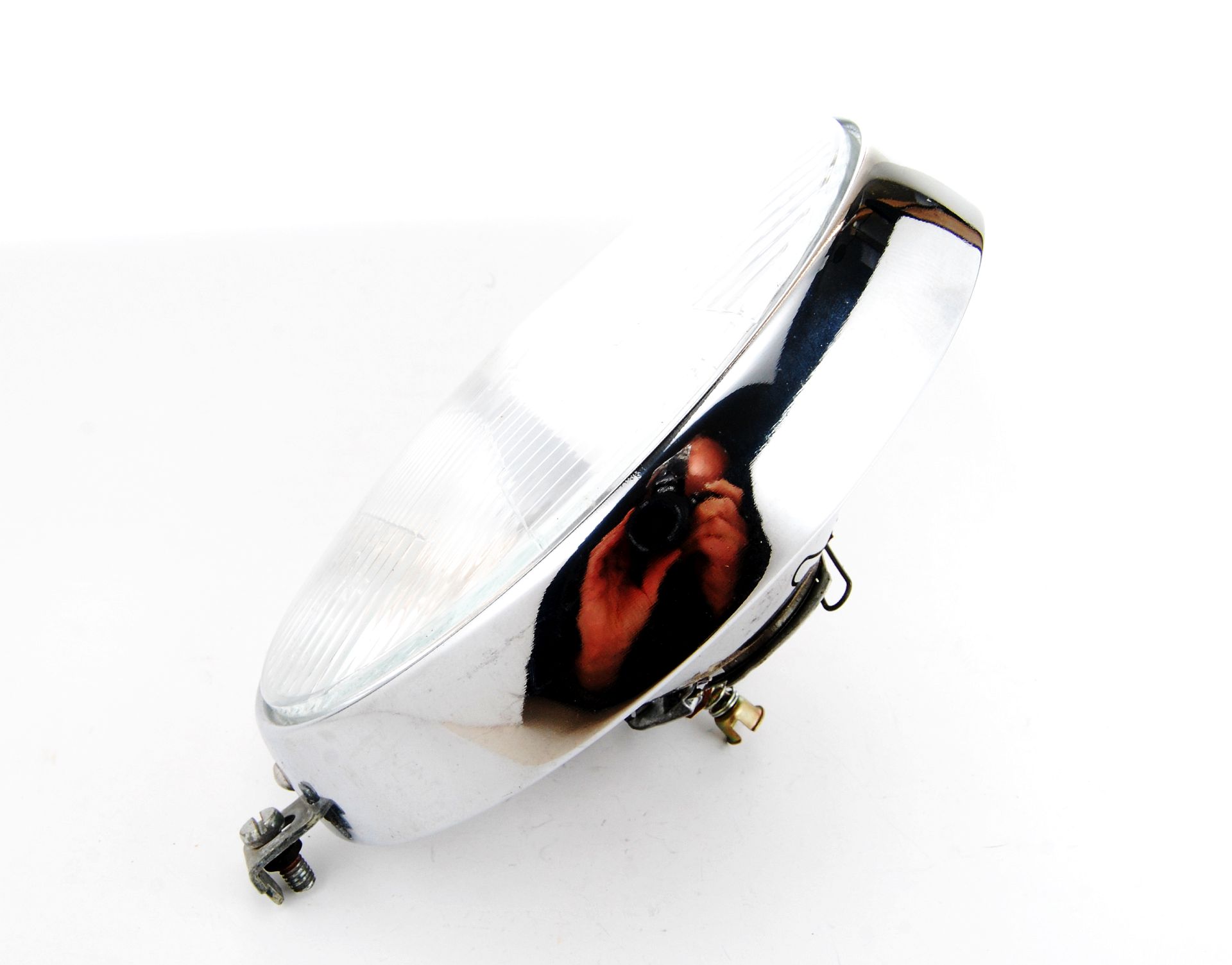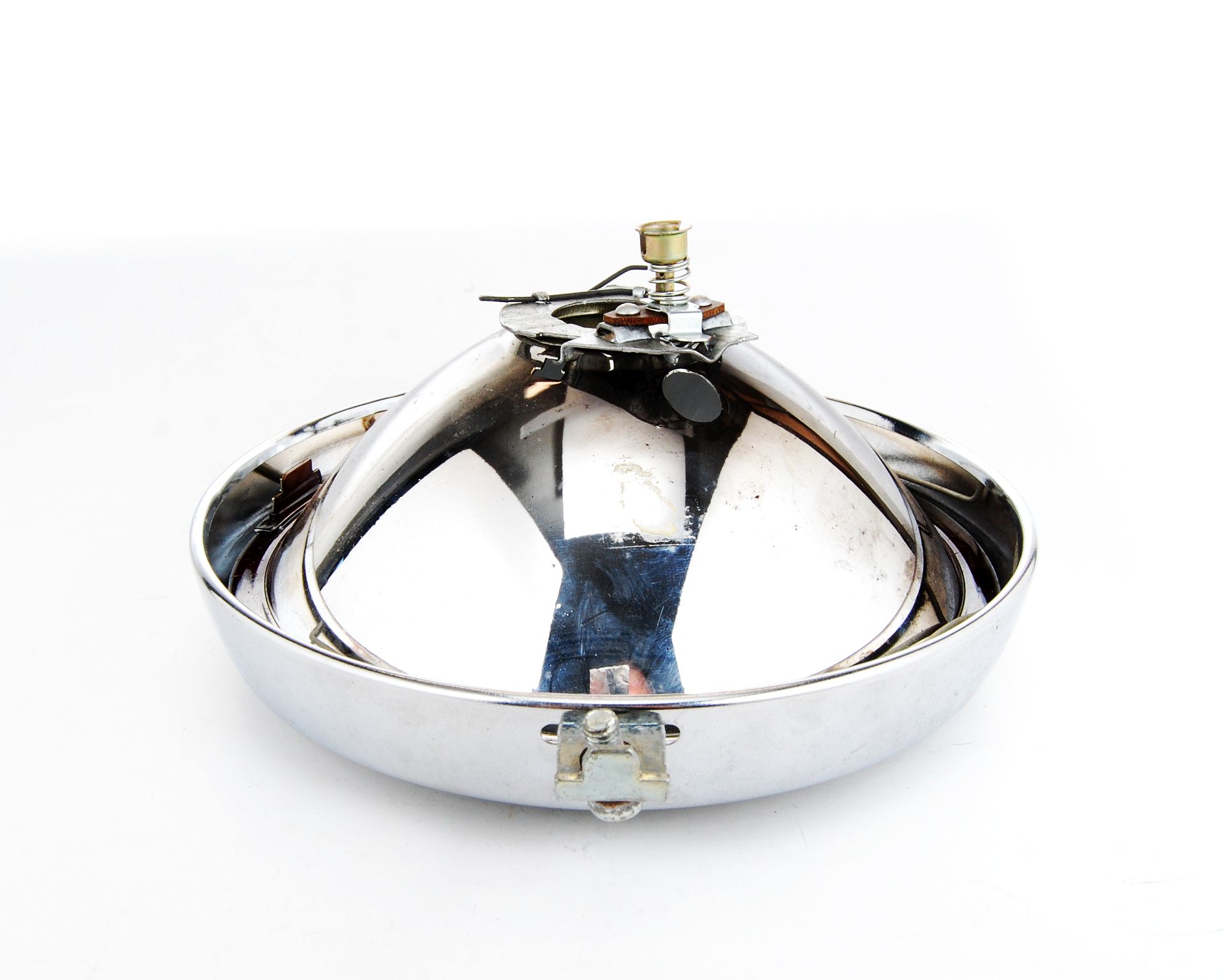 Originaler neuer FER Halogen H4 Scheinwerfereinsatz mit Lampenhalter und originalem Frontring in Chrom für den Hauptscheinwerfer an MZ ETZ 125, 150, 250, 251, 301 sowie Fortschritt Zugtraktor ZT300 ZT303 ZT320 ZT323.